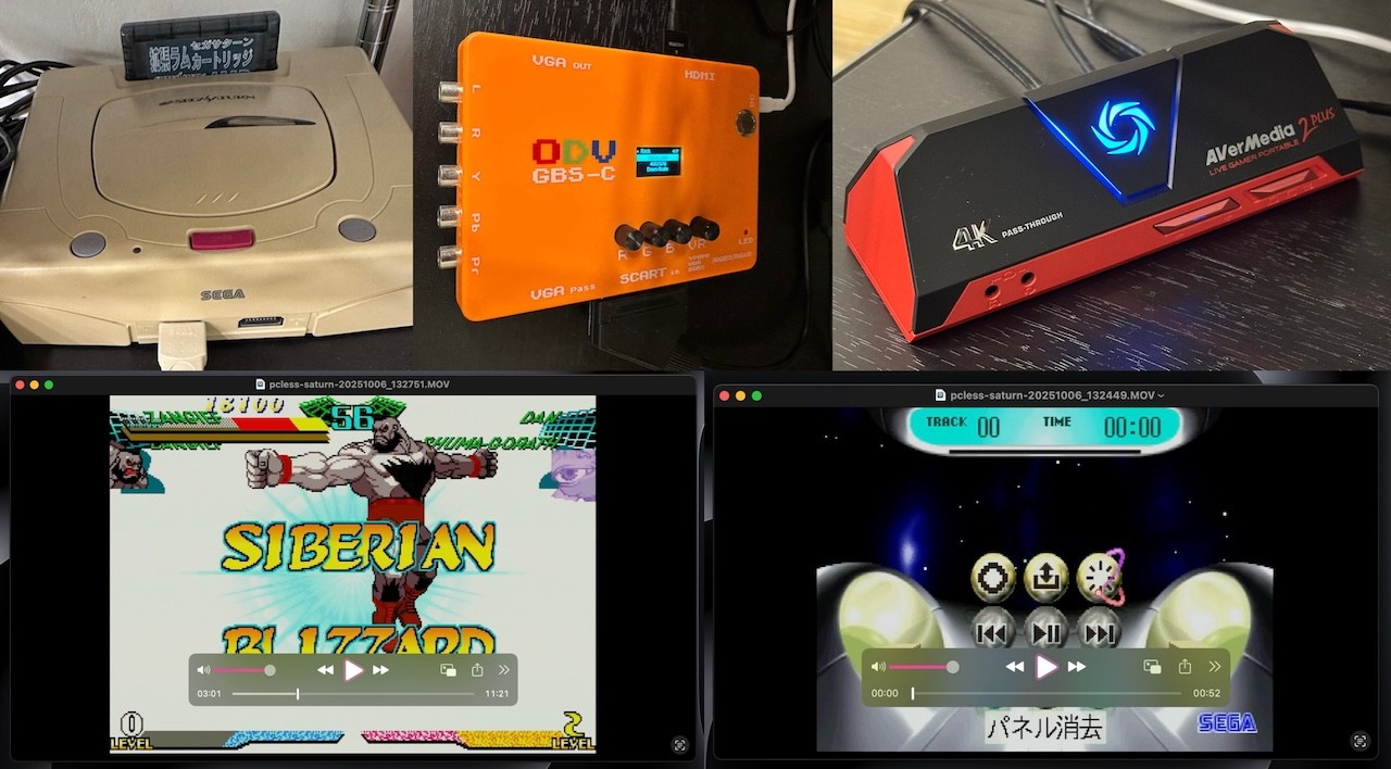 セガサターン + ODV-GBS-C (Resolution 1920x1080) + AVerMedia AVT-C878 PLUS 単体録画モードでアスペクト比を保ったまま (左右に黒い部分追加される) 録画できた(∩´∀`)∩ワーイ https://mastodon-japan.net/@nilab/115325562796668337