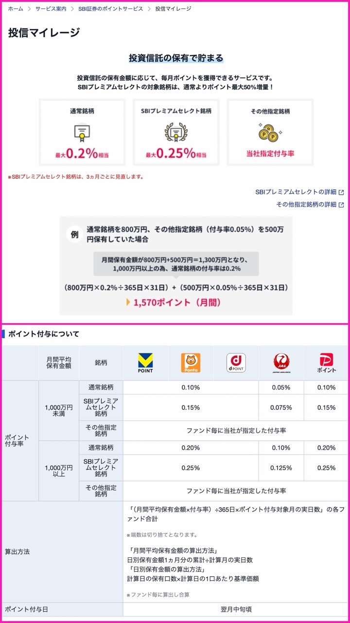 これでPayPayポイントを毎月もらってる。 「投資信託の保有金額に応じて、毎月ポイントを獲得できるサービスです。SBIプレミアムセレクトの対象銘柄は、通常よりポイント最大50%増量!」 投信マイレージ|SBI証券 https://www.sbisec.co.jp/ETGate/WPLETmgR001Control?OutSide=on&getFlg=on&burl=search_home&cat1=home&cat2=service&dir=service&file=home_point_fund_mileage.html