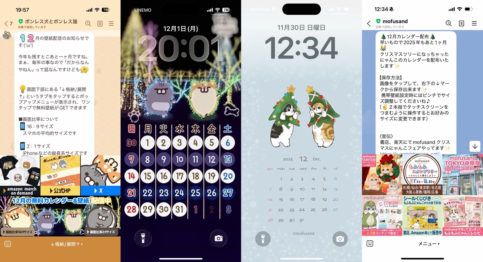 🐶🐱ボンレス犬猫さんと🐱🎄mofusandさんのカレンダー壁紙をiPhoneにセット( ゚∀゚)