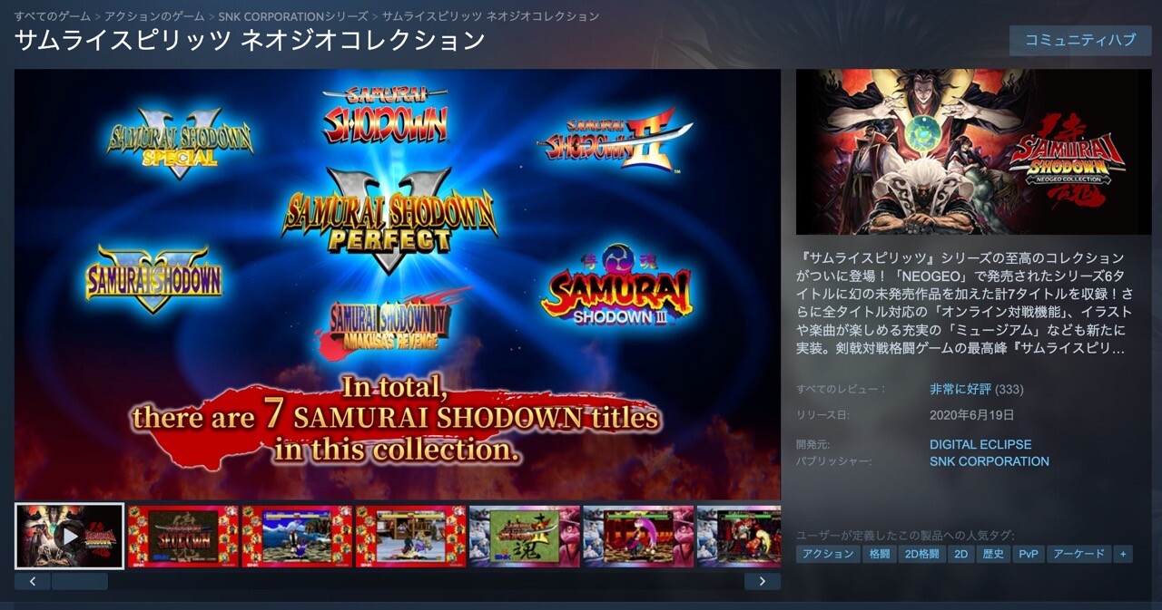 Steamで85% OFF:サムライスピリッツ ネオジオコレクション https://store.steampowered.com/app/999660/_/