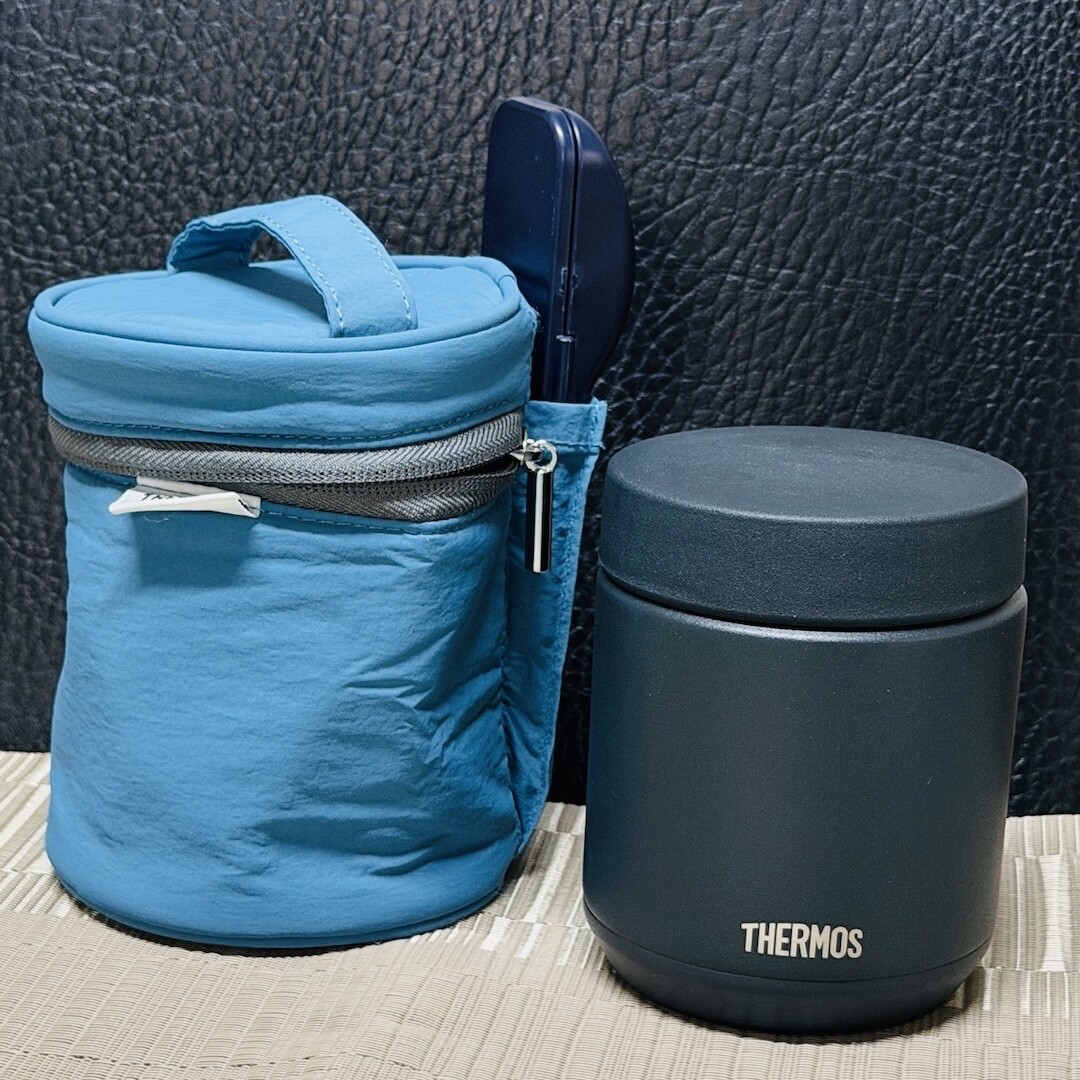 サーモス 真空断熱スープジャー JED-300 ブラック (BK), スープジャーポーチ RES-003 ブルー (BL), フードコンテナースプーン APC-160 ネイビー (NVY).