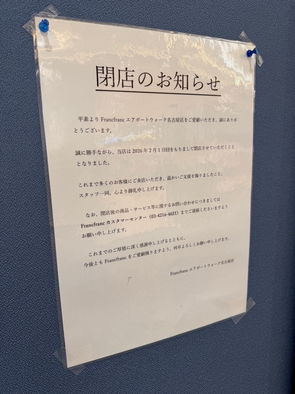 エアポートウォーク名古屋のフランフランが2月1日で閉店してた。 (@ Francfranc in 豊山町, 愛知県) https://fedibird.com/@nilab/116029233236487572