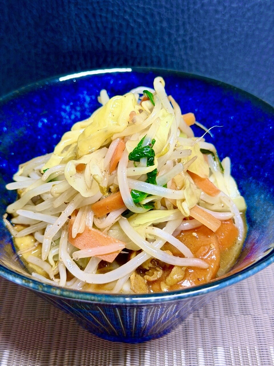 余り物のカレーに白出汁などを足してカレーうどんを作って、キャベツもやし炒めをトッピング (゚д゚)ウマー