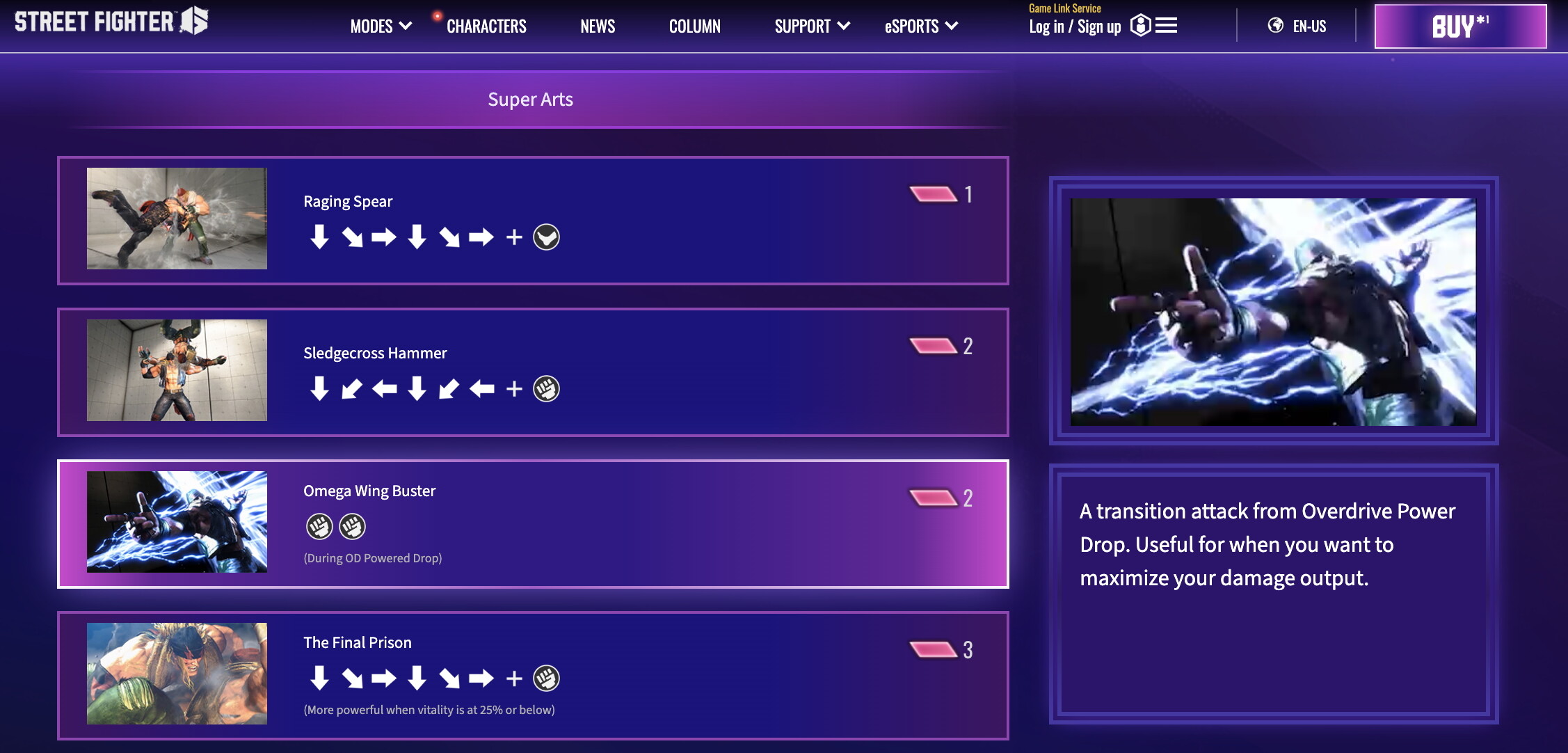 Alex COMMAND LIST | STREET FIGHTER 6 | CAPCOM https://www.streetfighter.com/6/en-us/character/alex/movelist