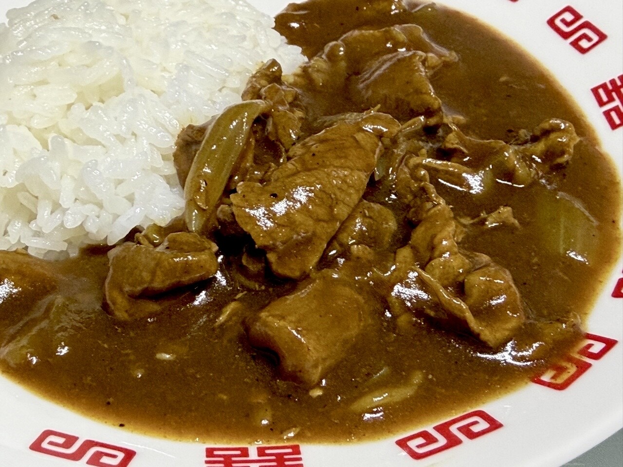 牛すじ肉を通算2時間以上煮込んだビーフカレー。肉は確かにだいぶ柔らかいけど味は可もなく不可もなく(;´∀`) カレールゥとかもうちょい工夫すべきだったかも