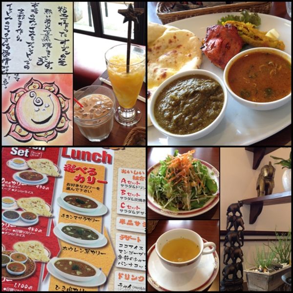 Bindi のカレーランチ。チーズ入りナンとかおにくとかマンゴーラッシーとかチャイとか。うまうま。