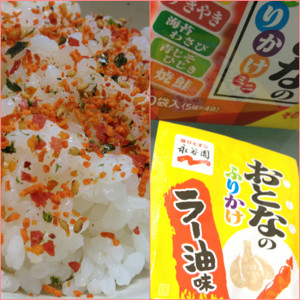 ラー油味! - おとなのふりかけミニ その1 http://mono.hatena.ne.jp/mono/wtuhJAs4Q9#/nilab/wtoboukAKD