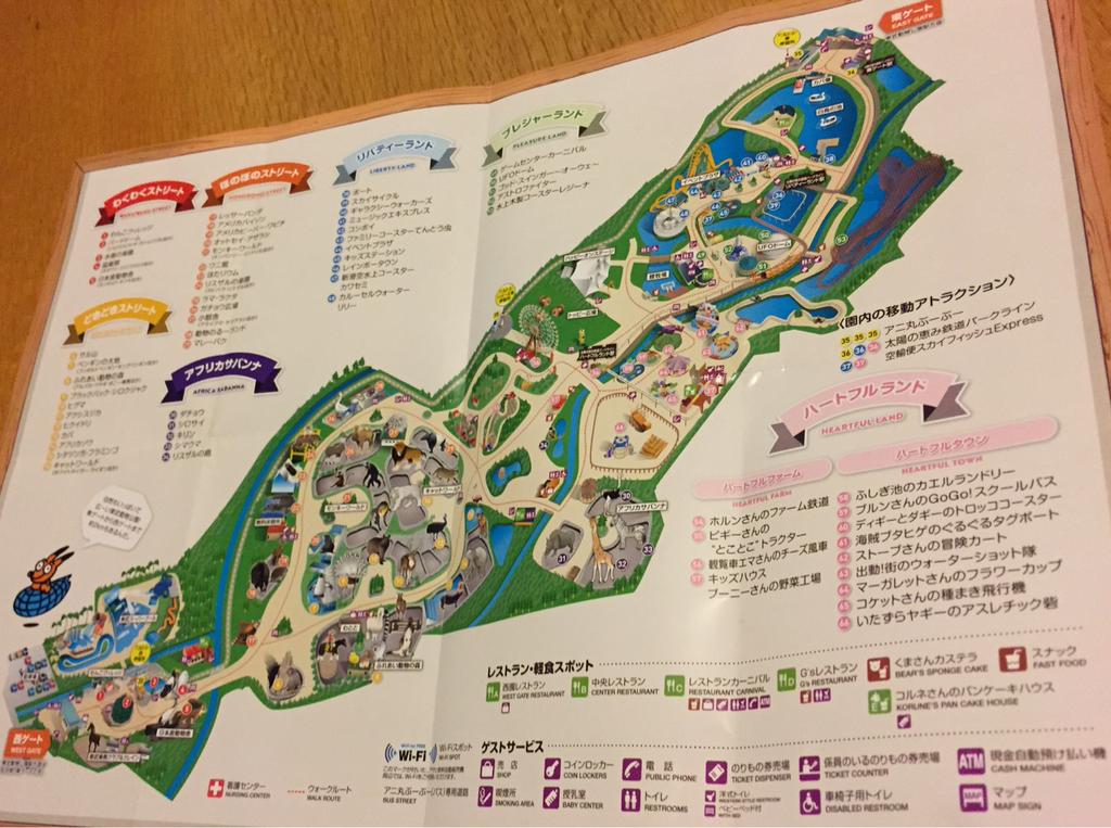 アトラクションのリスト。身長・年齢・付添者など乗れる条件が一覧できる。ワンデーパスはアトラクションで6回以上ぐらい遊ばないなら100円チケット買ったほうがいいかな。 http://twitter.com/nilab/status/602087673289773057/photo/1
