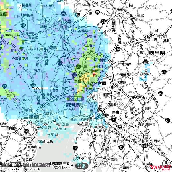 RT @ngy2010: 予想最大雨量(ミリ) 1時間雨量 9日 愛知50 岐阜50 三重40 24時間雨量 ~10日6時 愛知150 岐阜100 三重100