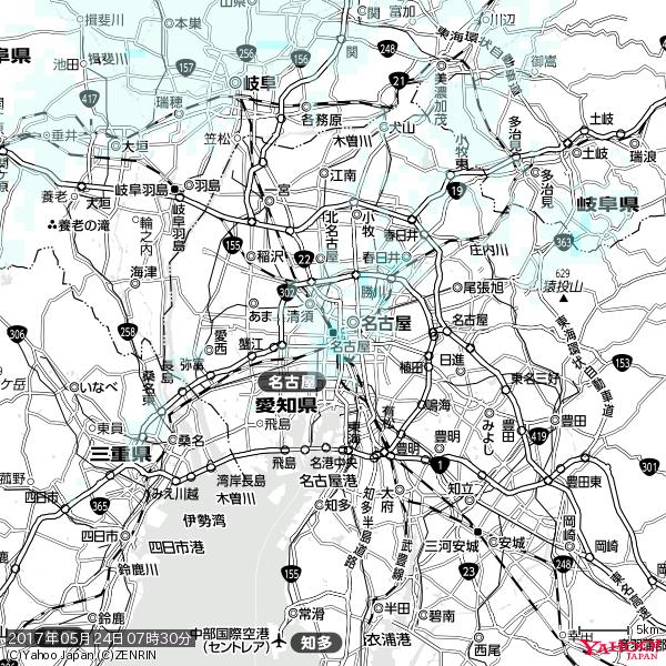 名古屋の天気(雨) 降水強度: 1.25(mm/h)  2017年05月25日 00時50分の雨雲  #雨雲bot #bot