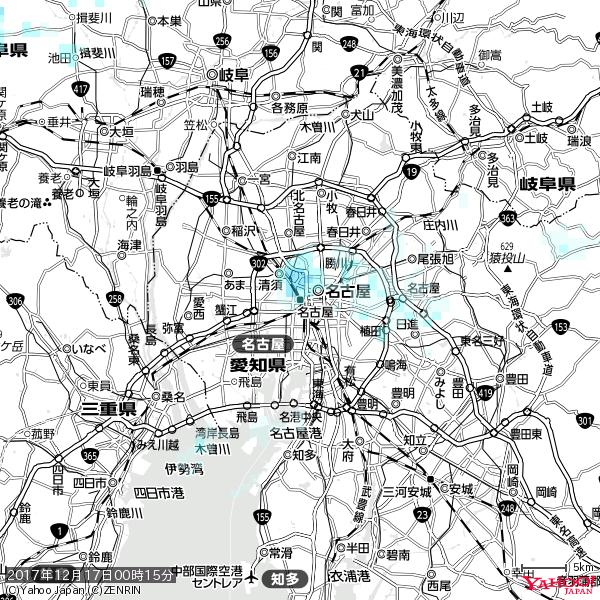 名古屋の天気(雨) 降水強度: 1.05(mm/h)  2017年12月17日 00時15分の雨雲  #雨雲bot #bot