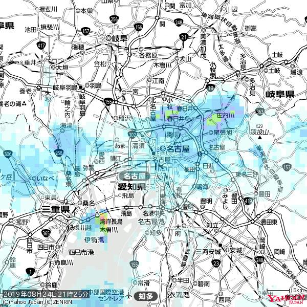 名古屋の天気(雨) 降水強度: 3.63(mm/h)  2019年08月24日 21時25分の雨雲  #雨雲bot #bot