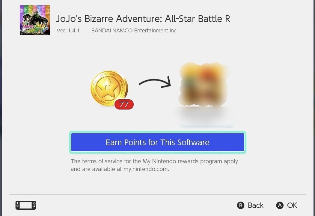 「ジョジョの奇妙な冒険 オールスターバトル R」でマイニンテンドーゴールドポイントを77ポイントゲット。