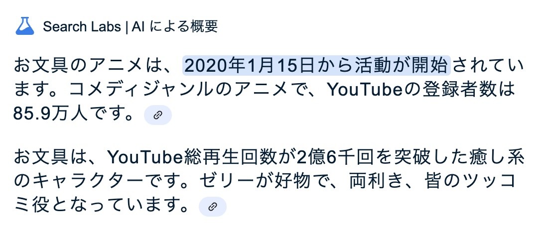 Google Search Labs AI の回答はまだまだ誤りが多いなぁ(;´∀`)