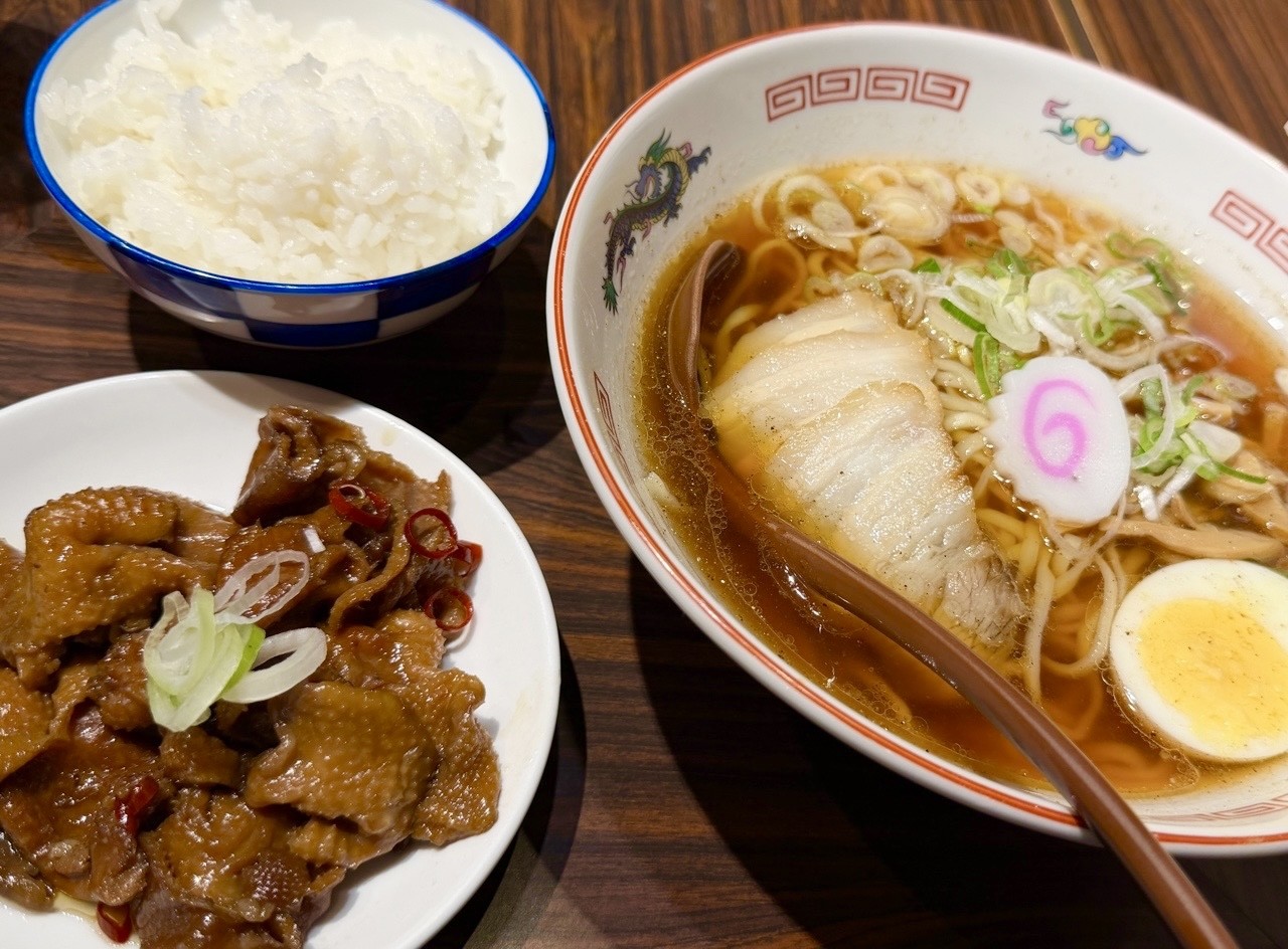 醤油ラーメン & 塩川名物 塩川鶏もつ at 喜多方らーめん 蔵まち