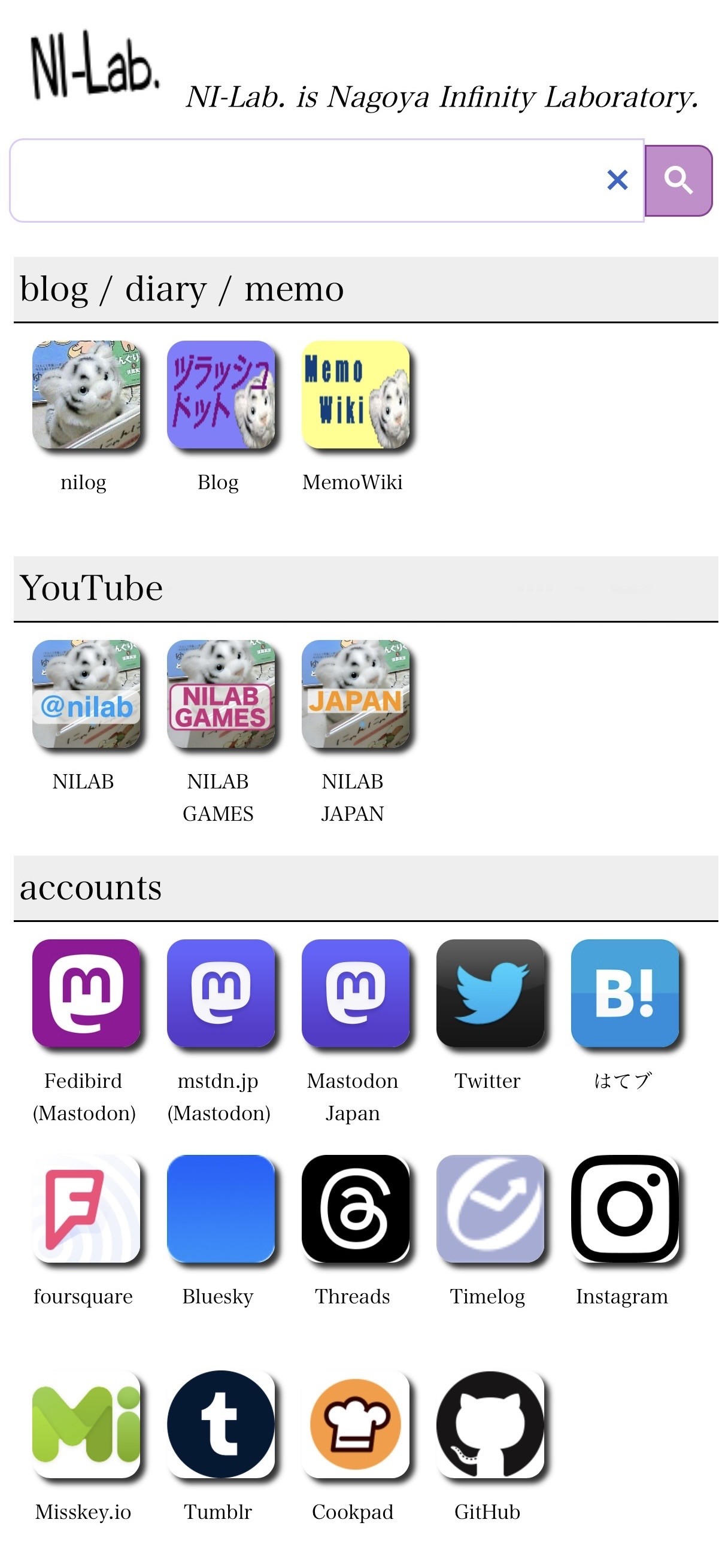トップページのアカウント項目に Fedibird と mstdn.jp のリンクを追加。2行のテキストが他のアイコンに重ならないようにしつつ他にも微調整でCSSを修正。 NI-Lab. (えぬあいらぼ, にらぼ, NILAB, nilab, @nilab) http://www.nilab.info/