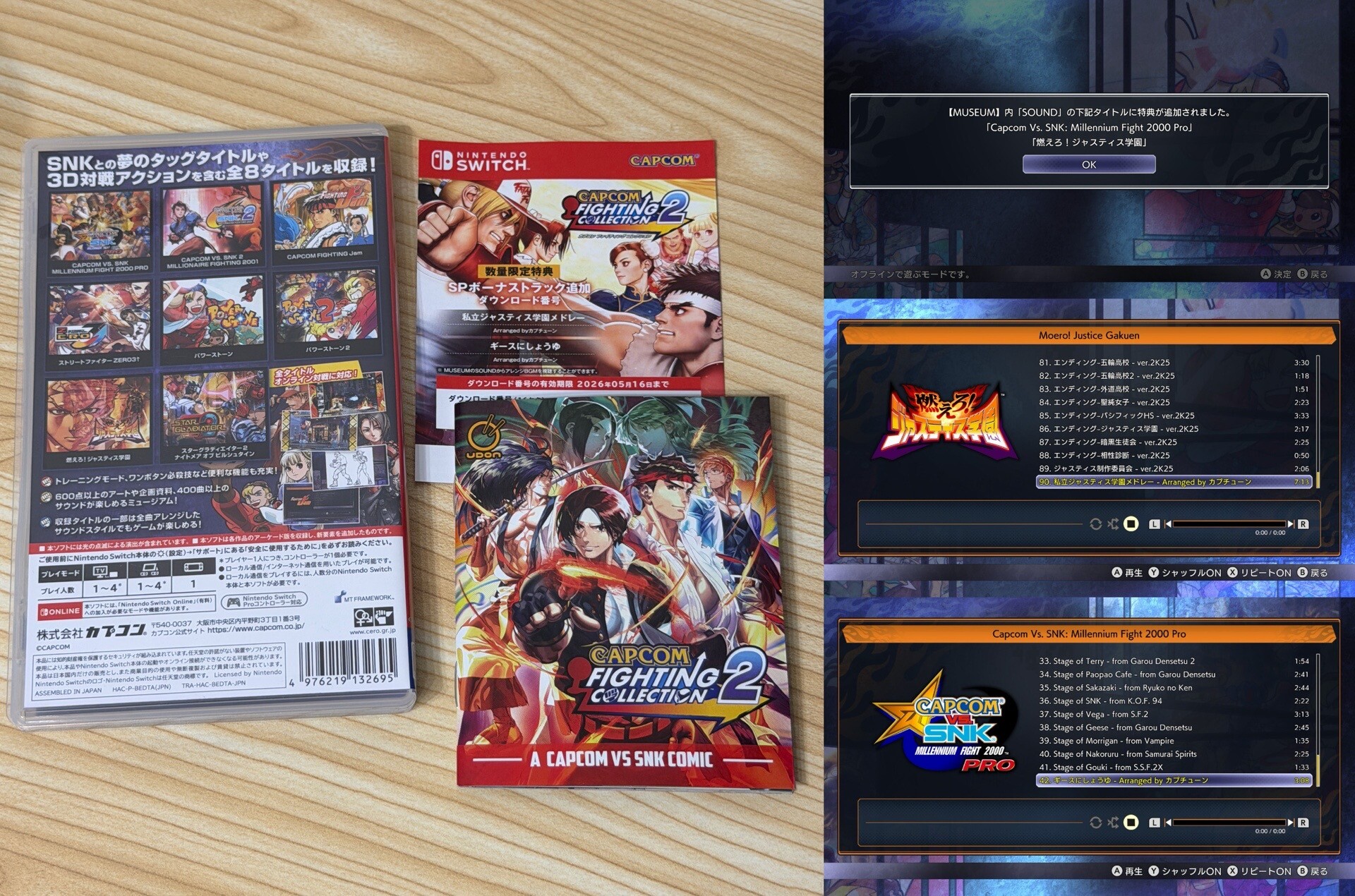 カプコン ファイティング コレクション2 数量限定特典 SPボーナストラック追加。ダウンロード番号の有効期限は2026年5月16日。「私立ジャスティス学園メドレー - Arranged by カプチューン」「ギースにしょうゆ - Arranged by カプチューン」の2曲が MUSEUM SOUND に追加された。