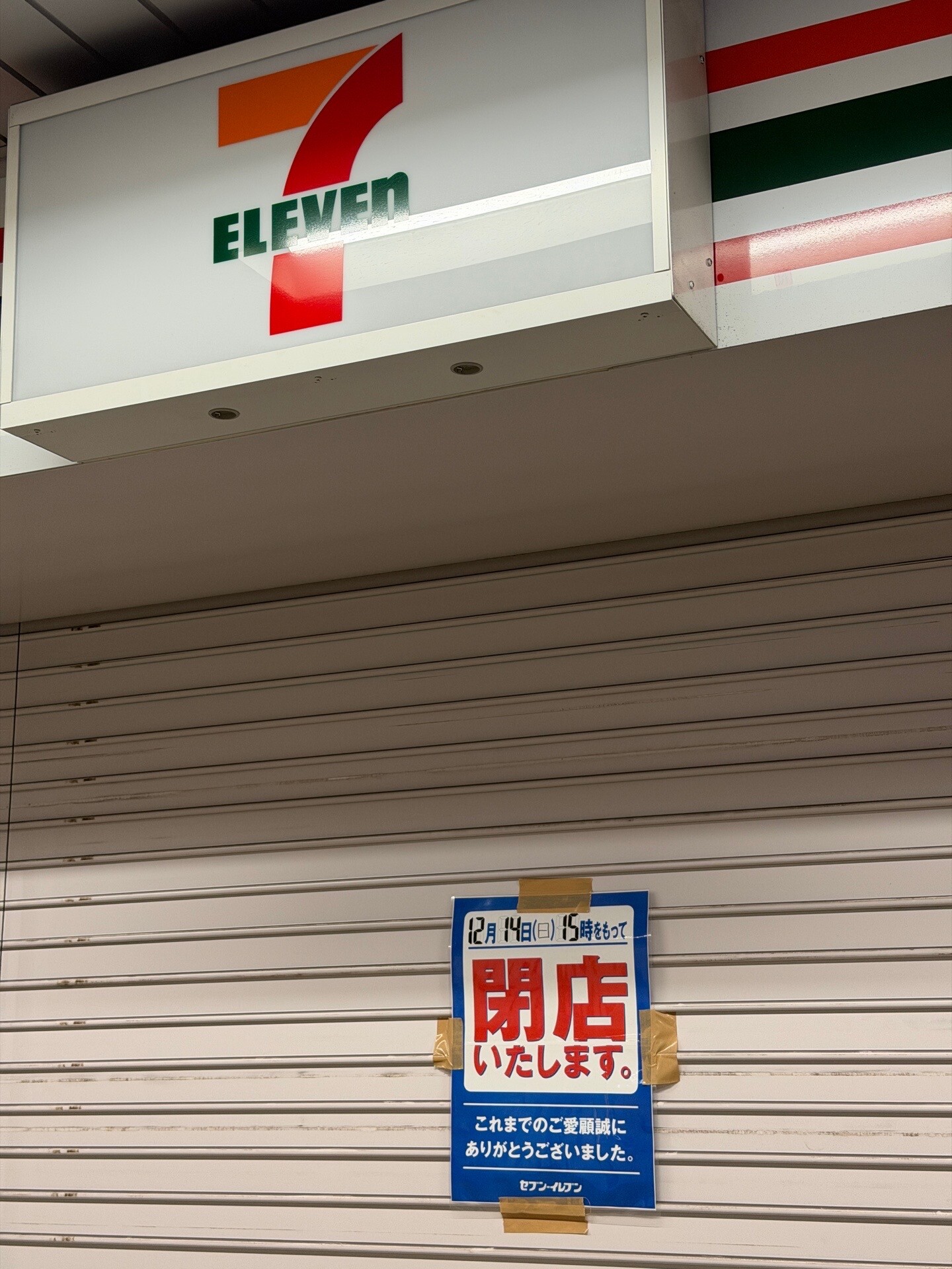 セブンイレブン名古屋地下鉄久屋大通駅店かな、12月14日に閉店。