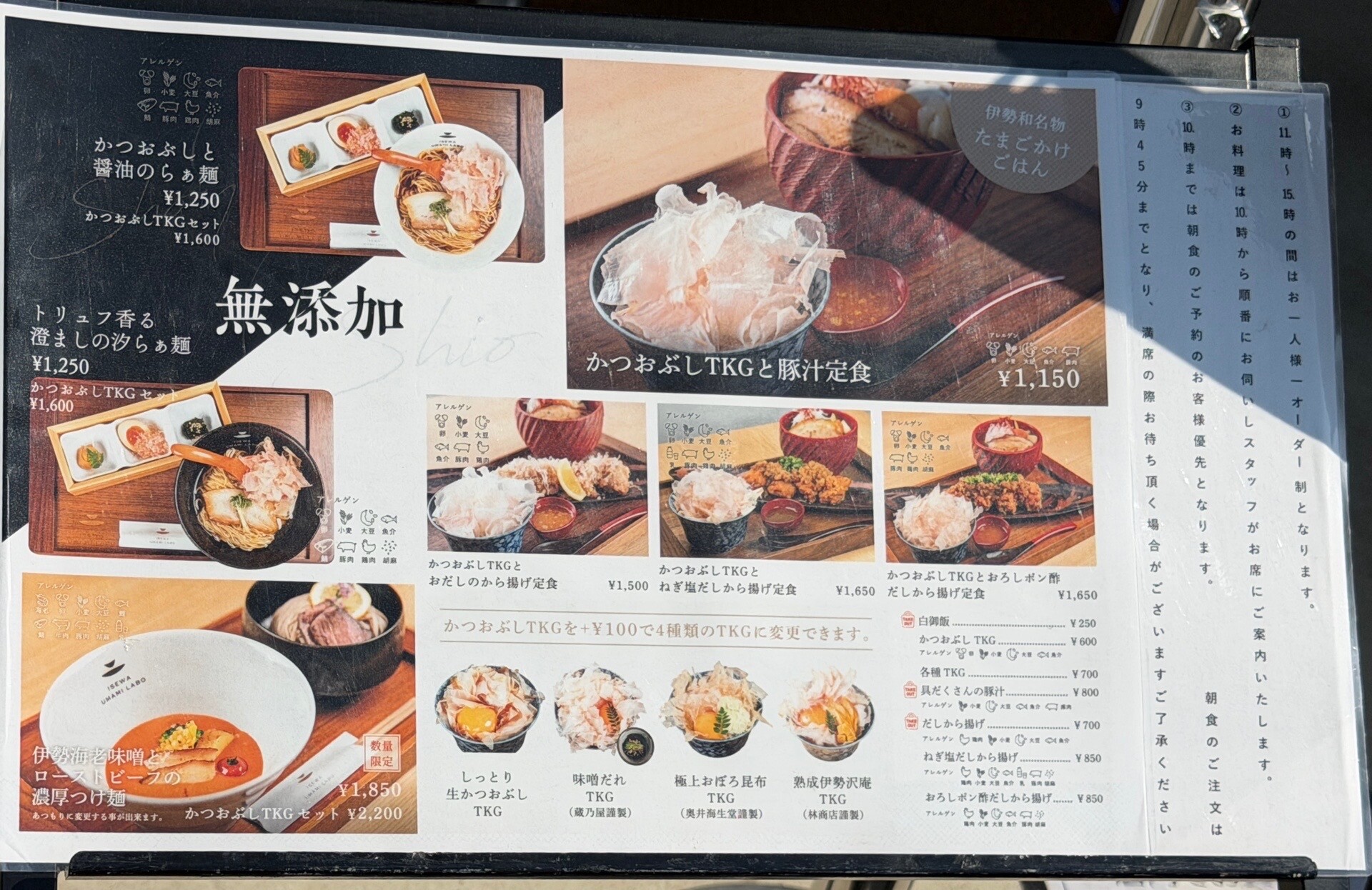 トリュフ香る澄ましの汐らぁ麺、だしから揚げ、しっとり生かつお節TKG (@ 削節本舗 伊勢和 in 多気町, 三重県) https://app.foursquare.com/share/checkin/699a75a75bad6b7fb17fc6a0?s=2qDTvSohimnw7gaHoShHyip3hZM&lang=en