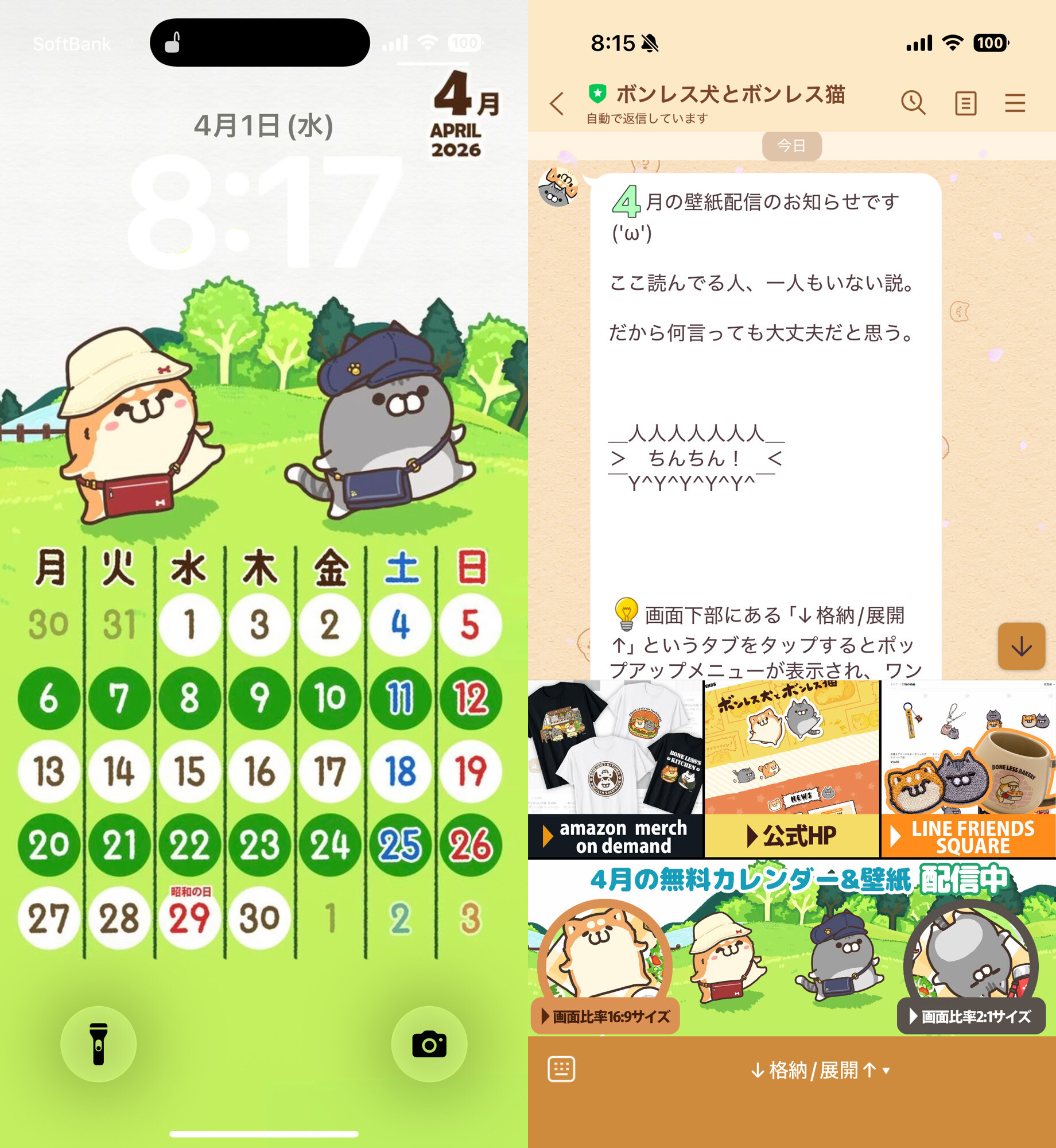 ボンレス犬猫さんのカレンダーをiPhone 17 Proにセット完了🐶🐱