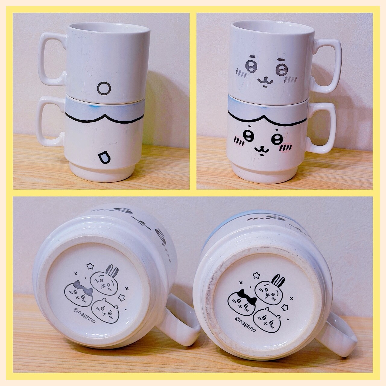 ちいかわ ハチワレ 陶器なスタックマグ。たぶん2021年12月に購入したもの。食洗機で洗い続けたせいか絵がけっこう薄くなってきている。落ちにくい汚れもある。