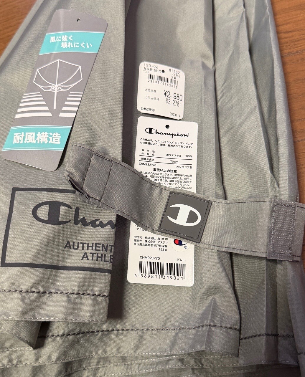 イオンで買った傘。チャンピオン 耐風 CHM92JP70。Amazonでも同じぐらいのお値段。