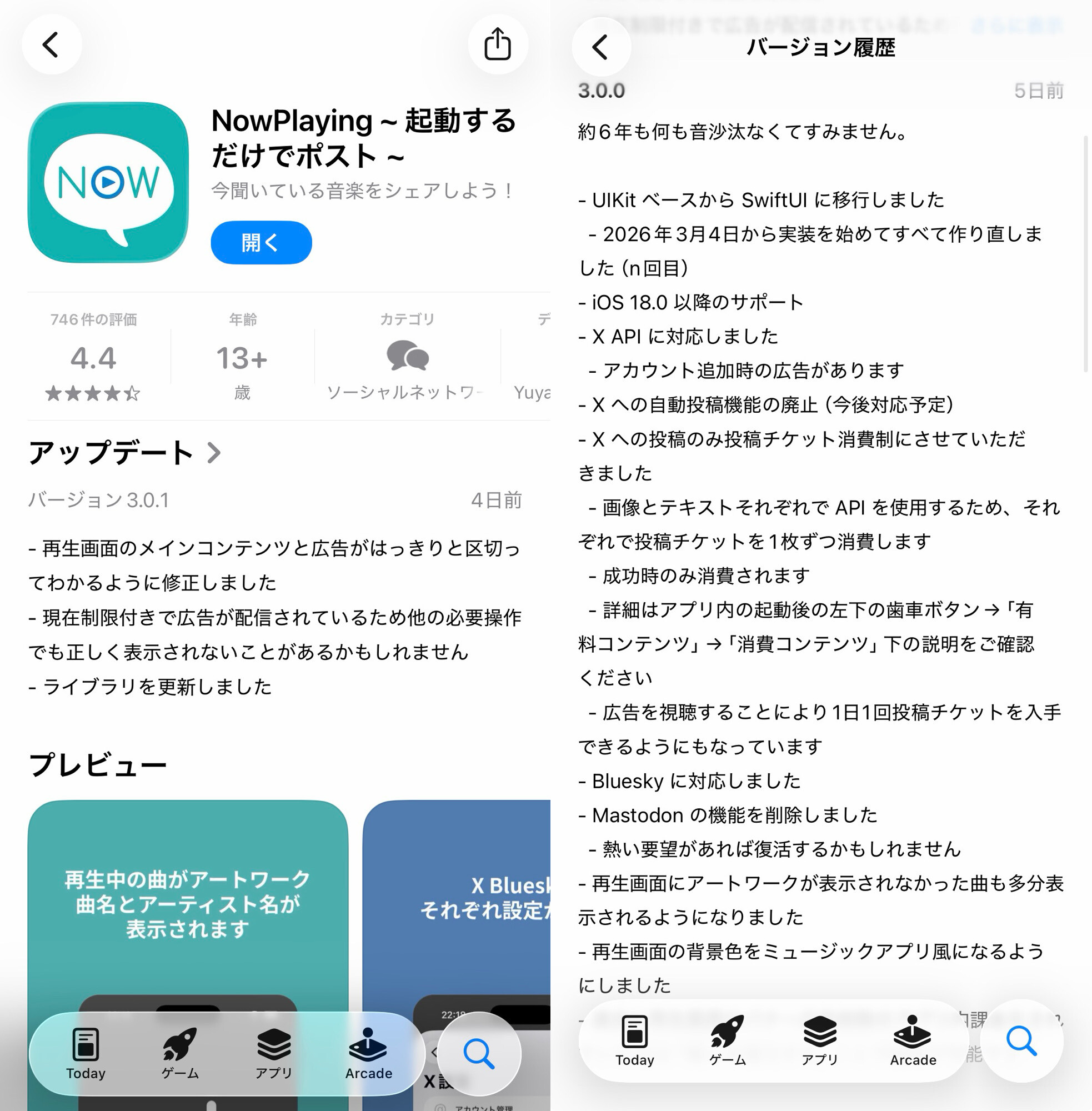 よく使っていた NowPlaying アプリが Mastodon 非対応になってしまった(ノД`) まあたくさんのプラットフォームに対応するのは大変だよね。。。