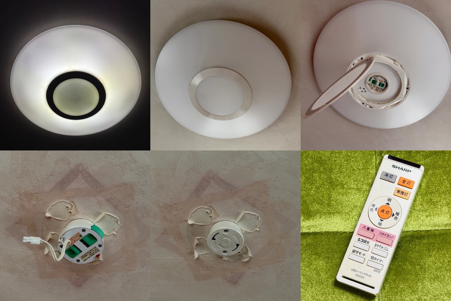 シャープ さくら色LEDシーリングライト DL-C406V 10畳用 光束4600lm。2013年4月からリビングに設置して13年間使った。元は4600ルーメンあって明るかったはずだけど最近はさすがに暗さを感じていた。雑な試算では2500ルーメン(4.5畳以下向け)ぐらいになっていたよう。桜色の落ち着いた明かりで少しずつ暗くなっていく『おやすみリズム機能』が良い感じだった。