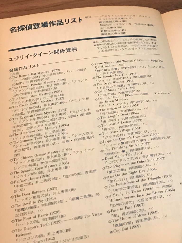 名探偵読本 ―― II エラリイ・クイーンとそのライヴァルたち 目次 https://twitter.com/nilab/status/1023425074353893376/photo/1