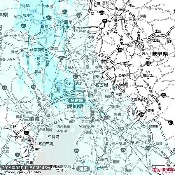 名古屋の天気(雨) 降水強度: 0.75(mm/h)  2019年02月11日 00時45分の雨雲  #雨雲bot #bot