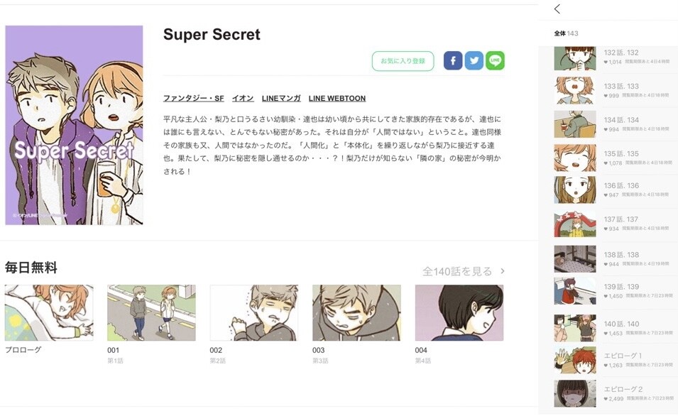 Super Secret を再読。いい話だなぁ(*´Д`) 「平凡な主人公・梨乃と口うるさい幼馴染・達也は幼い頃から共にしてきた家族的存在であるが、達也には誰にも言えない、とんでもない秘密があった。それは自分が「人間ではない」ということ。達也同様その家族も又、人間ではなかったのだ。「人間化」と「本体化」を繰り返しながら梨乃に接近する達也。果たして、梨乃に秘密を隠し通せるのか・・・?!梨乃だけが知らない「隣の家」の秘密が今明かされる!」 Super Secret|漫画無料・試し読み|LINE マンガ https://manga.line.me/product/periodic?id=Z0000261