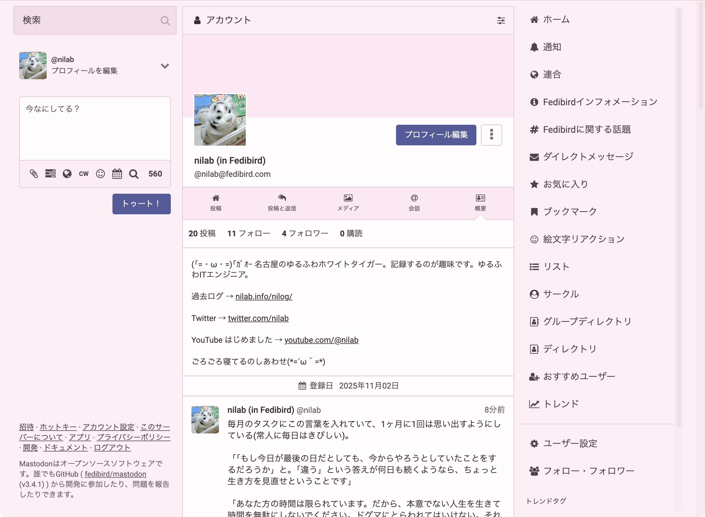 - NI-Lab.'s accounts - Fedibird - mstdn.jp - Mastodon Japan - Twitter(X) - はてなブックマーク - Timelog