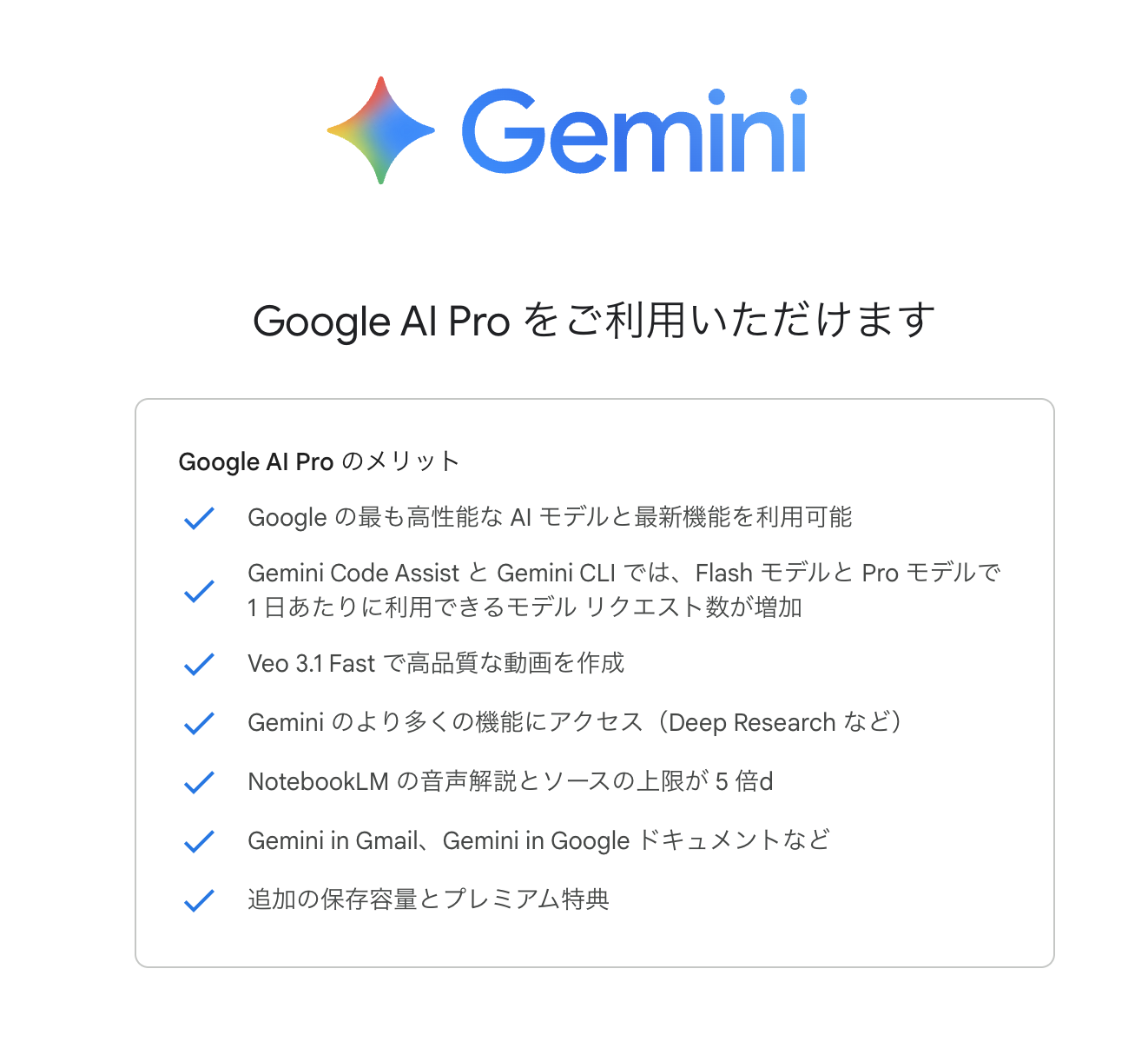 Google AI Pro 定期購読を契約してみた。1ヶ月間は無料体験になる。ストレージは Google One で契約しているのと同じく 2TB。その契約している Google One は自動的に解約された。