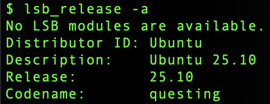手持ちのサーバー1台について、最新バージョン Ubuntu 25.10 Questing Quokka にアップグレード完了。