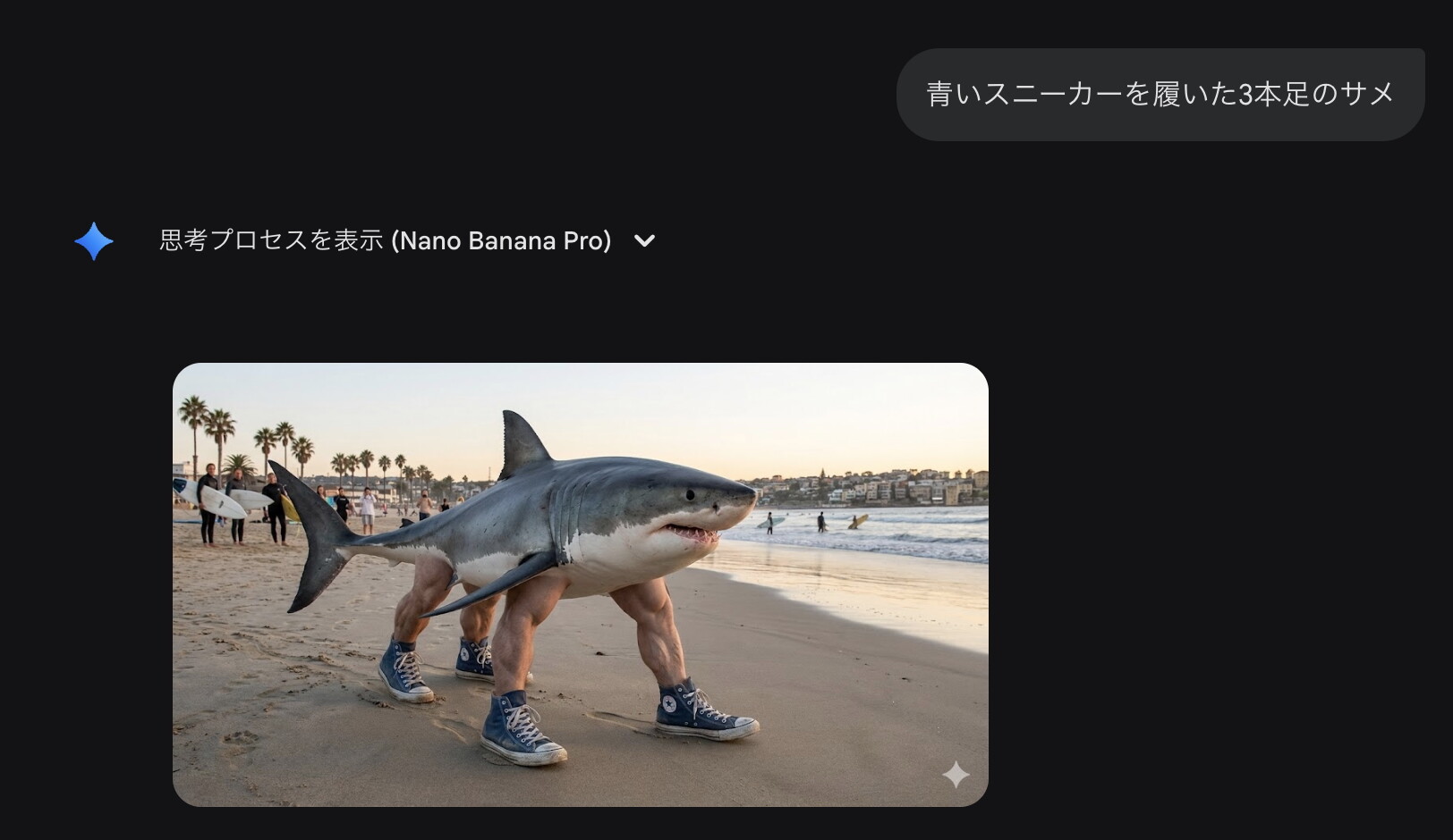 Google Gemini Nano Banana Pro で画像生成。「3本足」って指示しているのに4本足になっちゃうんだよなぁ。。。