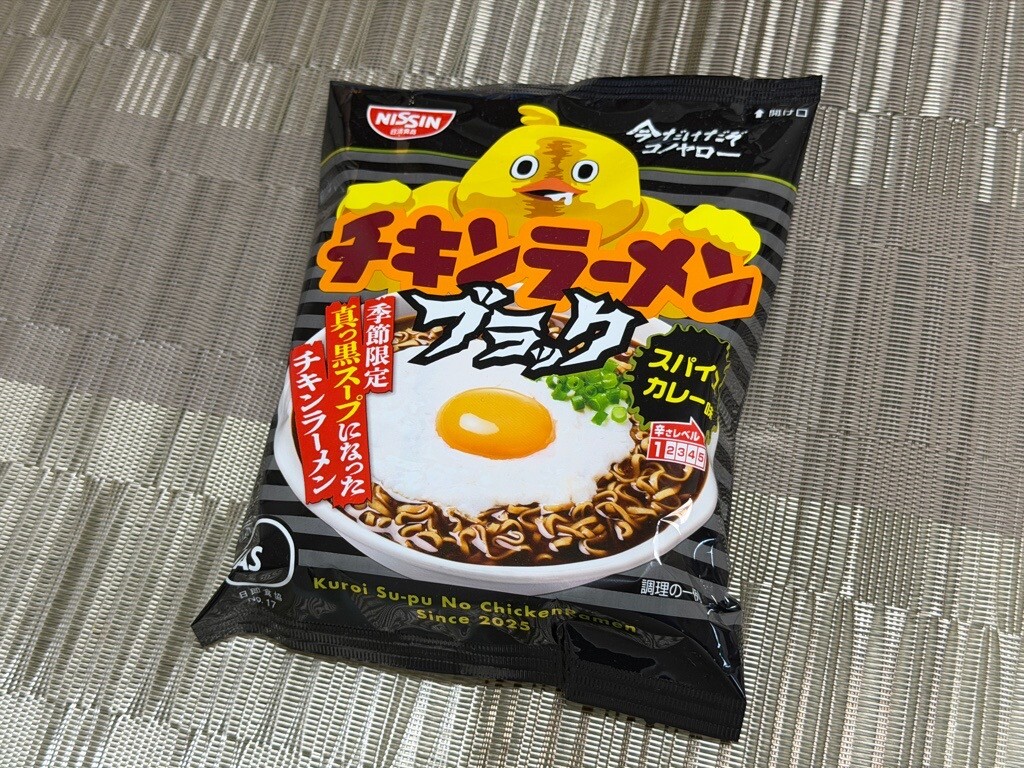 チキンラーメン ブラック スパイスカレー味。きょうの昼ご飯。季節限定。