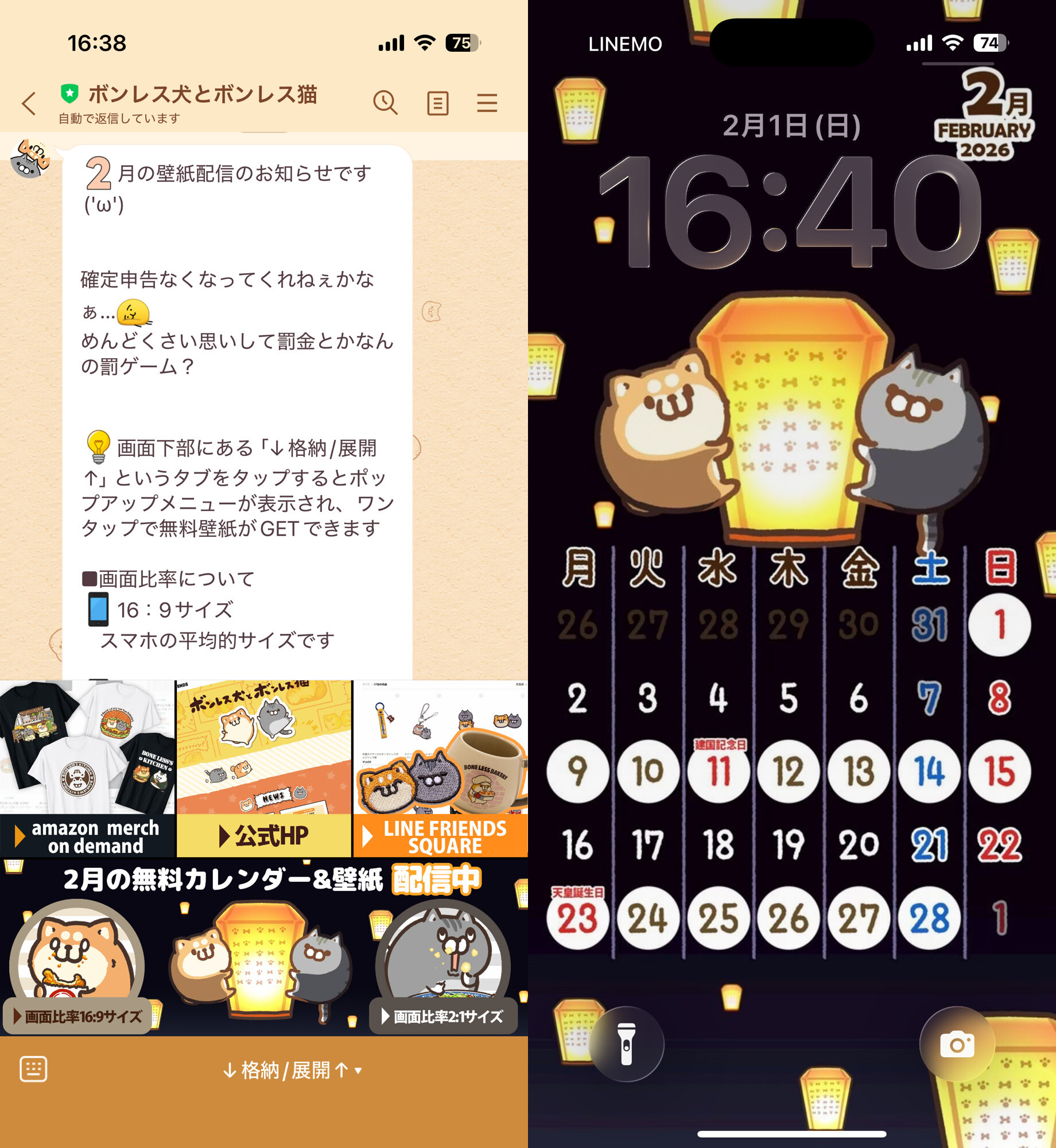 ボンレス犬猫さんのカレンダーを iPhone 17 Pro にセットだん