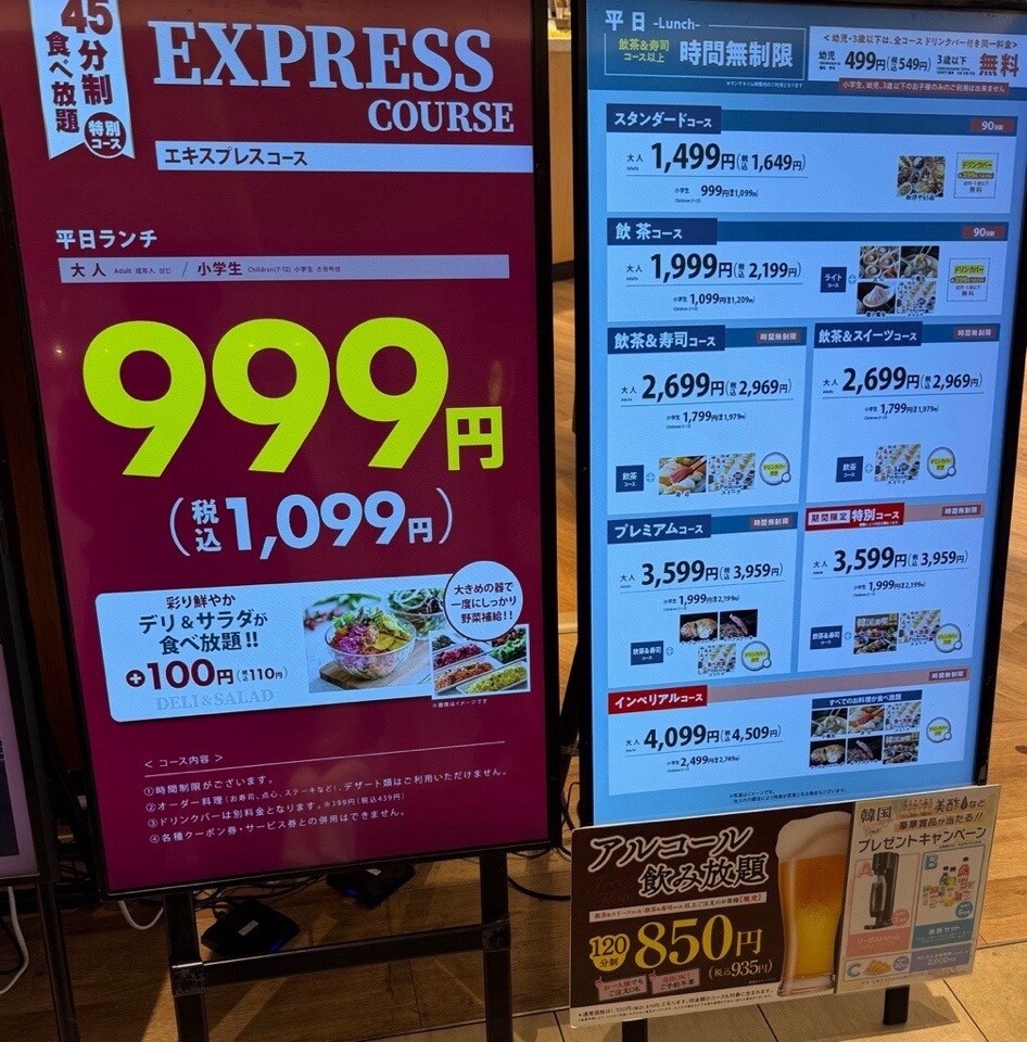 1099円の1番激安のエキスプレスコースにした。店頭の看板には詳細が書かれていない。通常のメニューに載っていなくてこちらから聞かないと教えてもらえない( ´▽`) デリ&サラダは20種類ぐらいあるけど、お皿に一回だけしか盛れない。温かい料理は何度でもOK。時間制限45分。 (@ ナチュラルブッフェ てとてファーム in 名古屋市, 愛知県) https://app.foursquare.com/share/checkin/6982af8001f77f5d5eb0f317?s=RXBzfX3mCI5wekH_PuLChYanpgE&lang=en