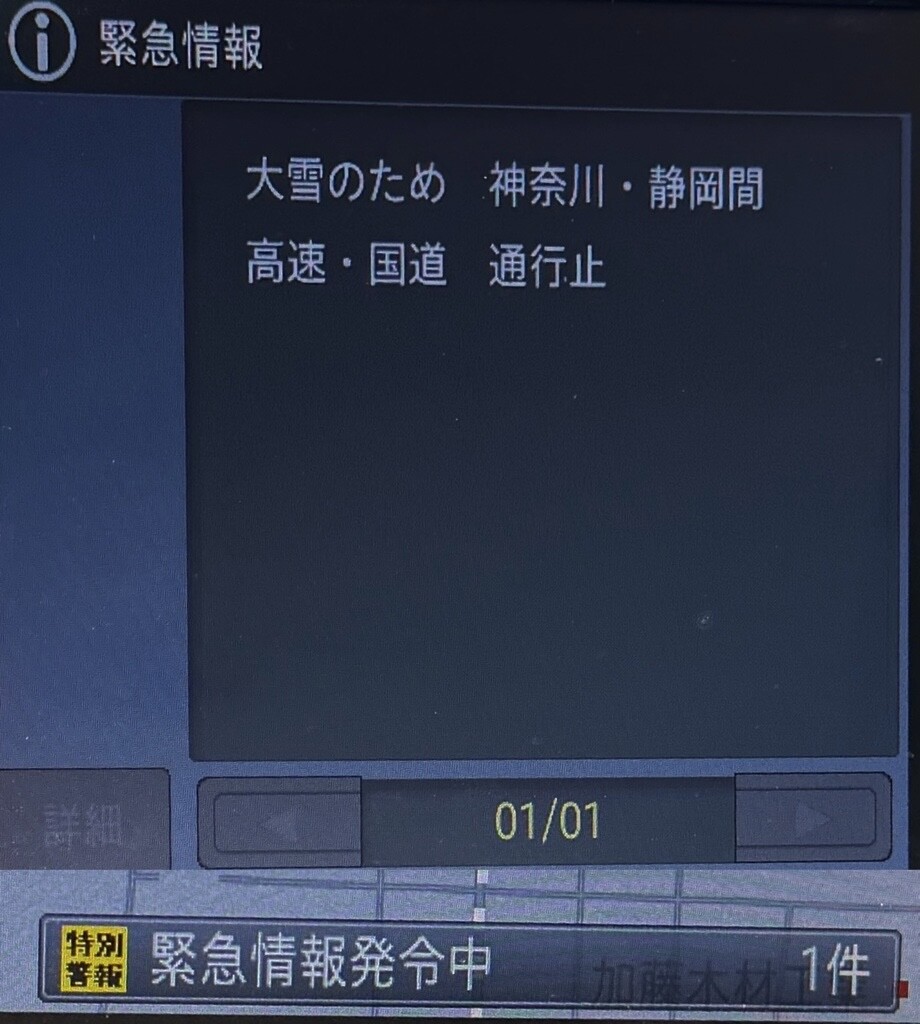 カーナビに珍しく緊急情報なんてものが表示されてた