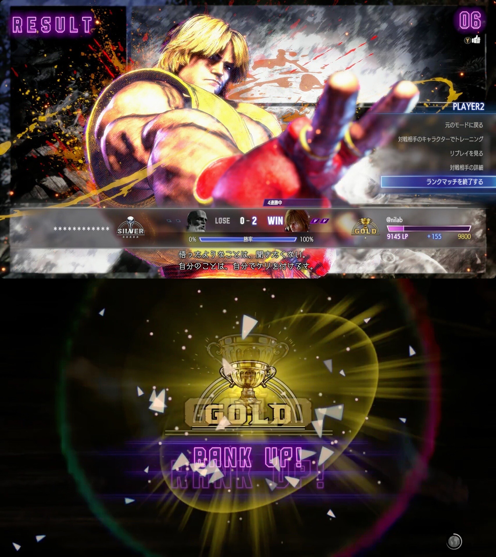 スト6ケンでGoldリーグにランクアップした(∩´∀`)∩ワーイ