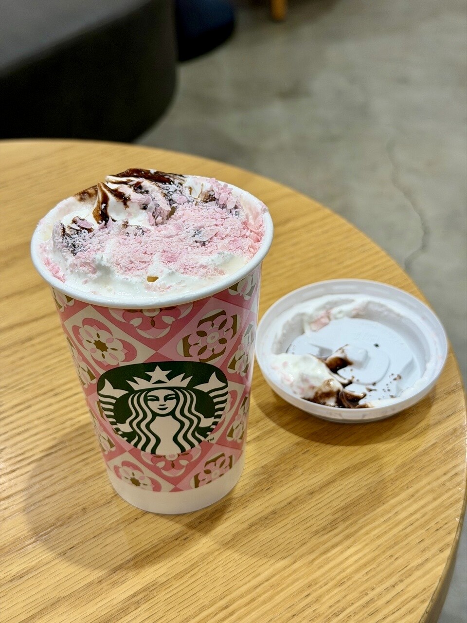 桜 咲くよ ラテ カスタマイズでホイップクリームとチョコソース多めに。フタをするとクリームが(;´∀`) at mozoスタバ4階 (@ Starbucks in 名古屋市, 愛知県) app.foursquare.com/share/check