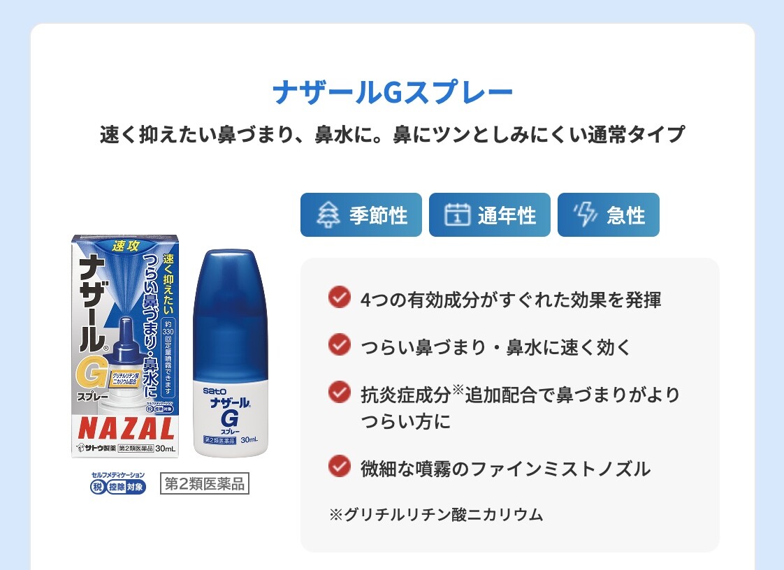 ナザールGスプレー|鼻づまり・鼻水・くしゃみにはサトウ製薬の点鼻薬シリーズ nazal.jp/lineup/gspray.html