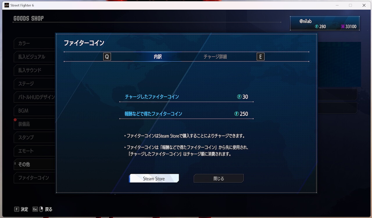 「ファイターコイン(FC)は『ストリートファイター6』ゲーム内でのみ使えるゲーム内通貨です」