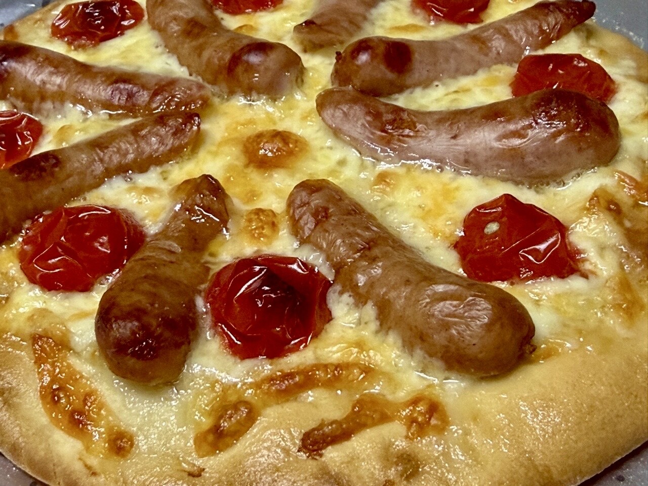 チーズだけのチルドピザにウインナーとミニトマト乗せて食べる(゚д゚)ウマー