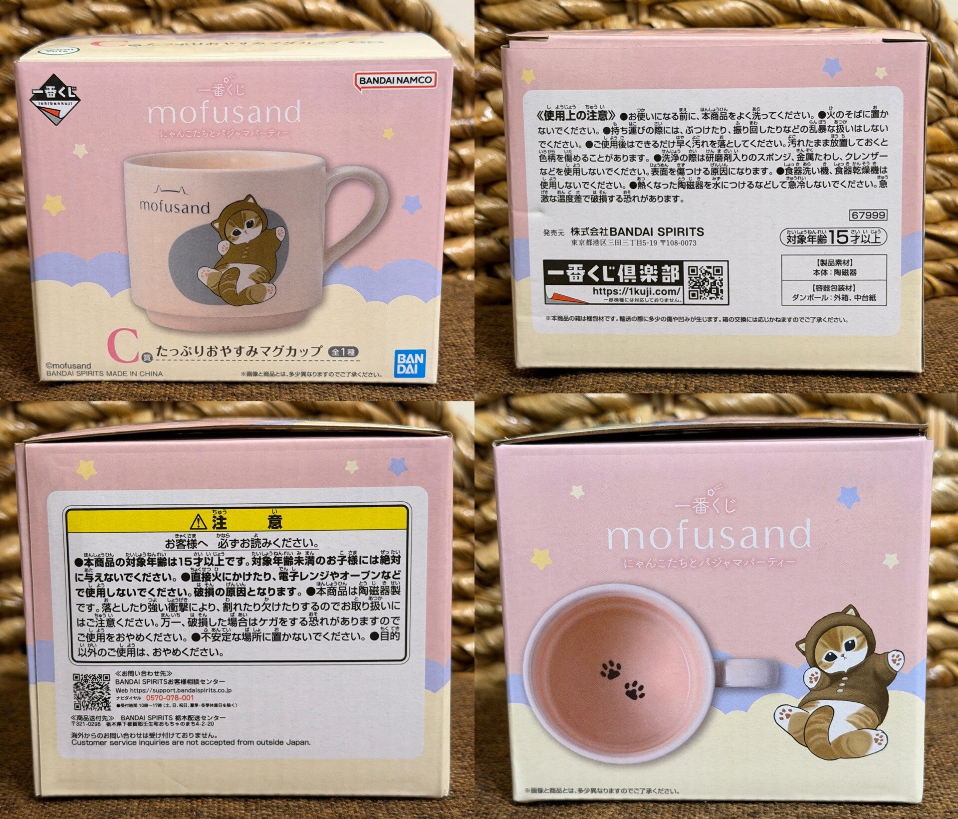 一番くじ mofusand にゃんこたちとパジャマパーティー C賞 たっぷりおやすみマグカップ 全1種。直火、電子レンジ、オーブン、食洗機、食器乾燥機で使えない。条件がけっこうきびしい。