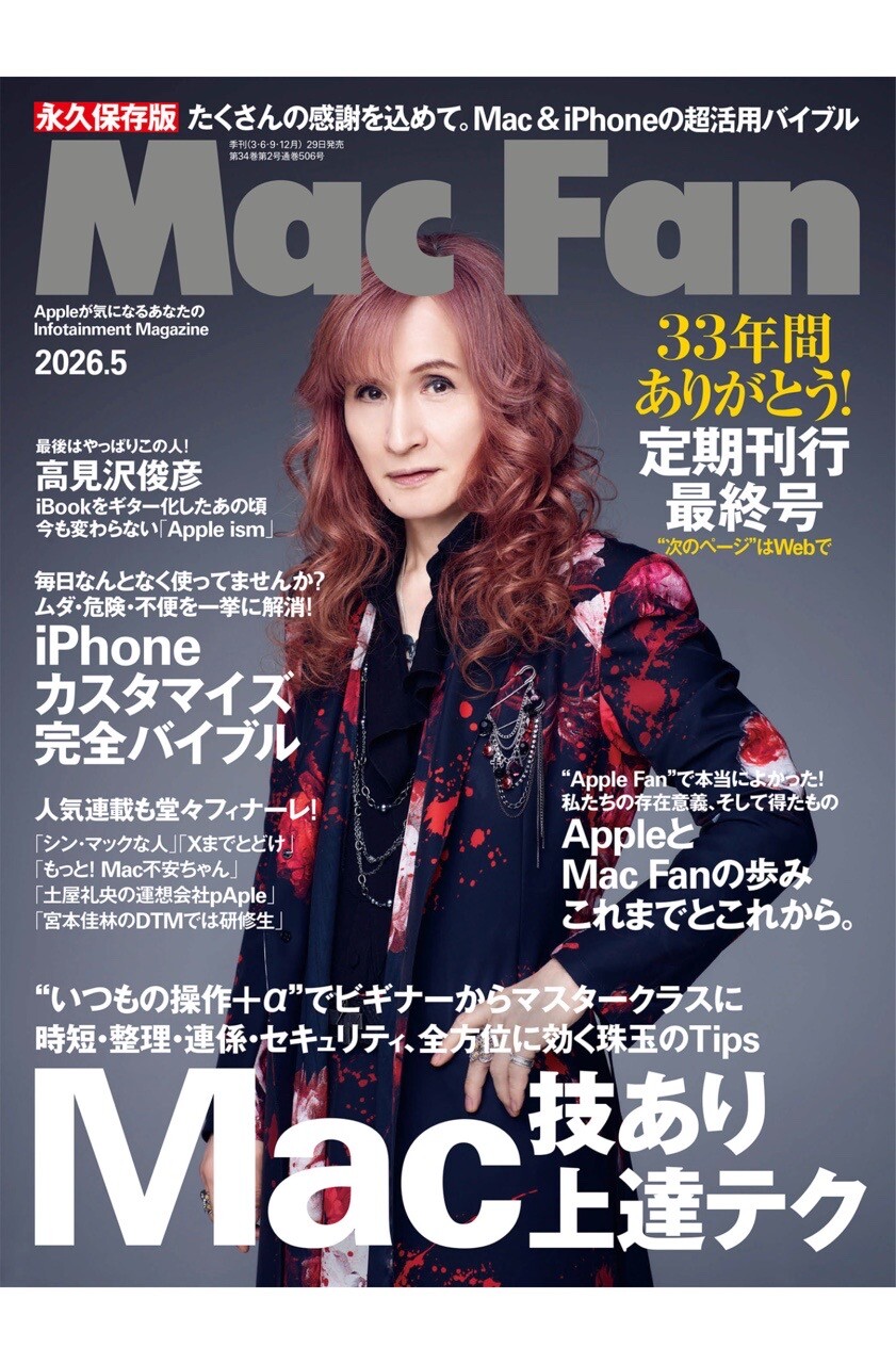 「雑誌『Mac Fan』は2026年5月号(2026年3月27日発売号)をもちまして定期刊行を終了し、今後はWebメディア、コミュニティ、そして不定期刊行のムック・書籍を組み合わせた、新しい形のメディアブランドへと生まれ変わります」
