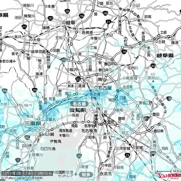 名古屋の天気(雨) 降水強度: 3.63(mm/h)  2019年08月24日 23時05分の雨雲  #雨雲bot #bot