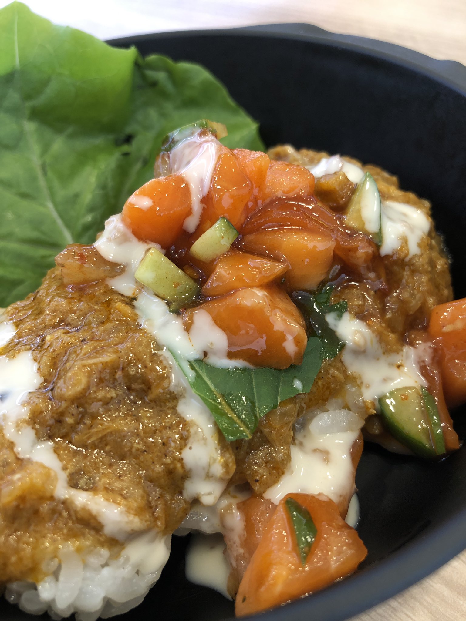 かっぱ寿司で海鮮シャリーマ・カレー。ツナのキーマカレーらしい。なかなか美味しい。 https://twitter.com/nilab/status/1167627609343053824/photo/1
