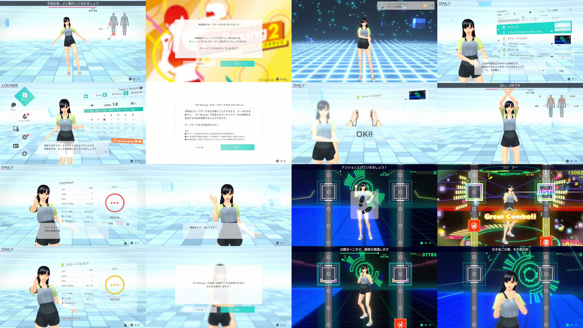 前作フィットボクシング1からデータ移行してフィットボクシング2をはじめる。体験版をやっていたからチュートリアル飛ばせる。ストレッチは前作と同じ内容。ストレッチ飽きるんだよね。。。 #fitboxing #フィットボクシング #NintendoSwitch https://twitter.com/nilab/status/1336154102988881920/photo/1