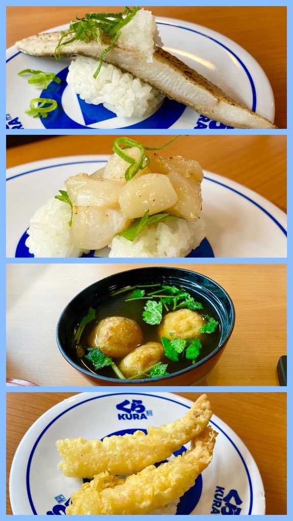 北海道 炙りとろ真ほっけ、ねぎ塩貝柱にぎり、お出汁たこ焼き、えび天寿司 at くら寿司 https://twitter.com/nilab/status/1467405847139852291/photo/1